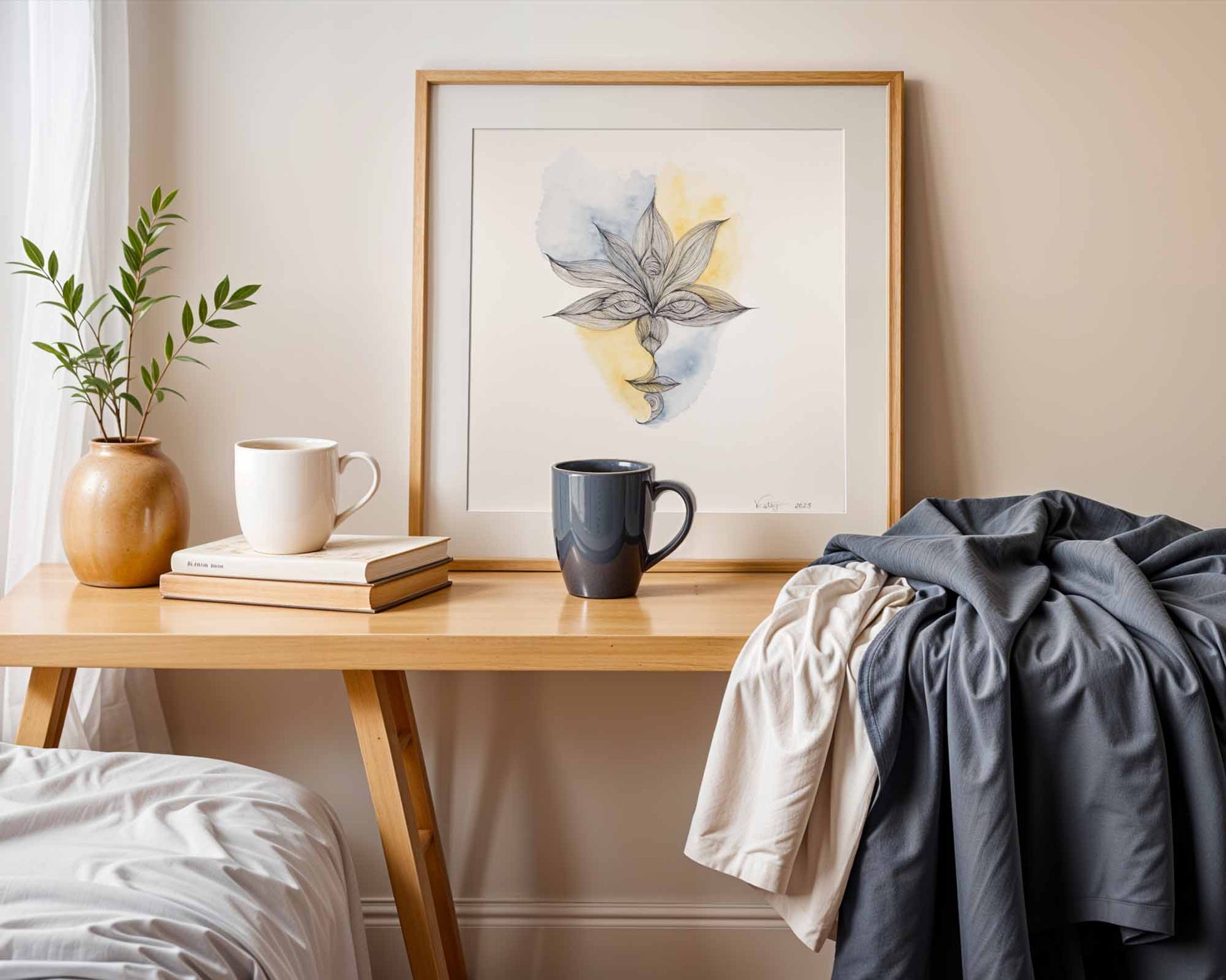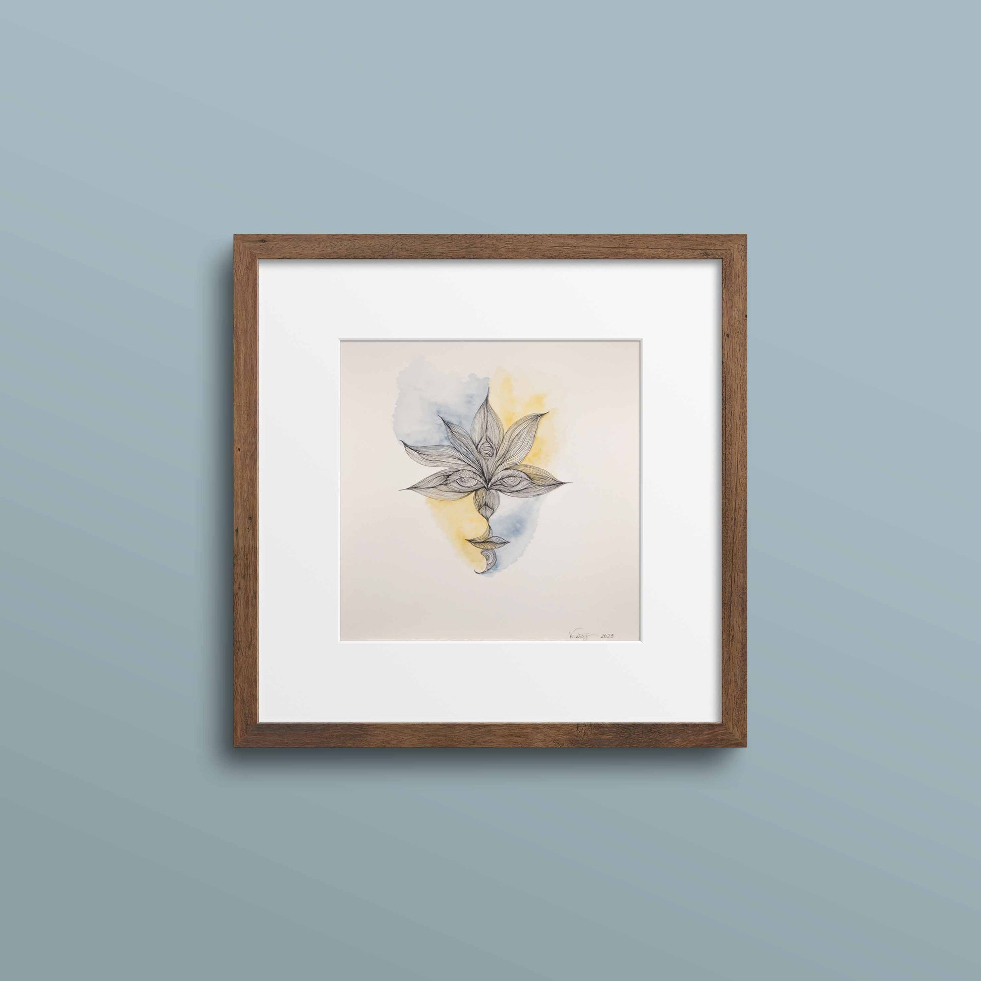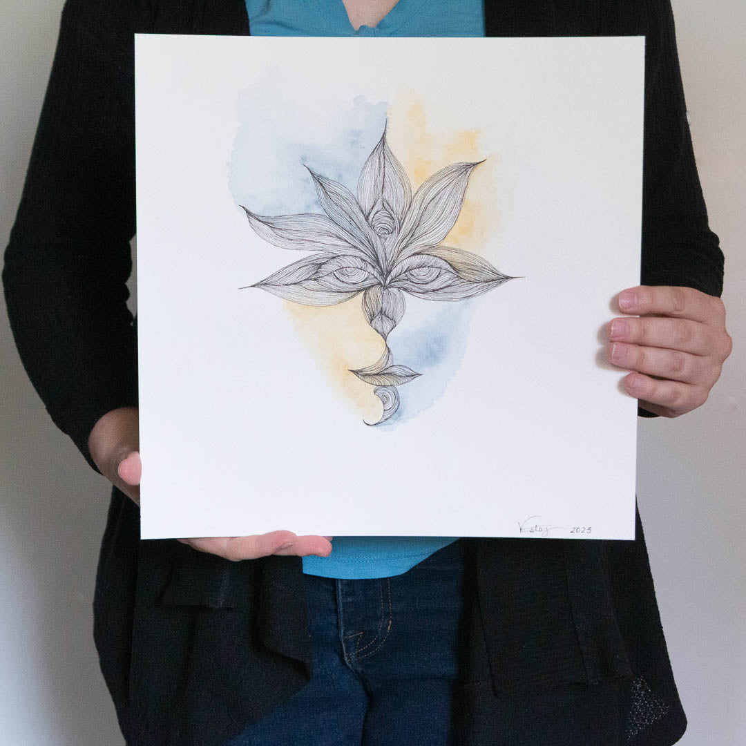 Created on 12" x 12" Arches cold-pressed 140lb 100% cotton watercolor paper, this piece blends the vibrancy of Derwent Inktense watercolor pencils with the fine detail of Sakura Micron pigment ink pens. The result is a softly textured, emotionally resonant composition—perfect for spaces where stillness and meaning are welcome guests.
