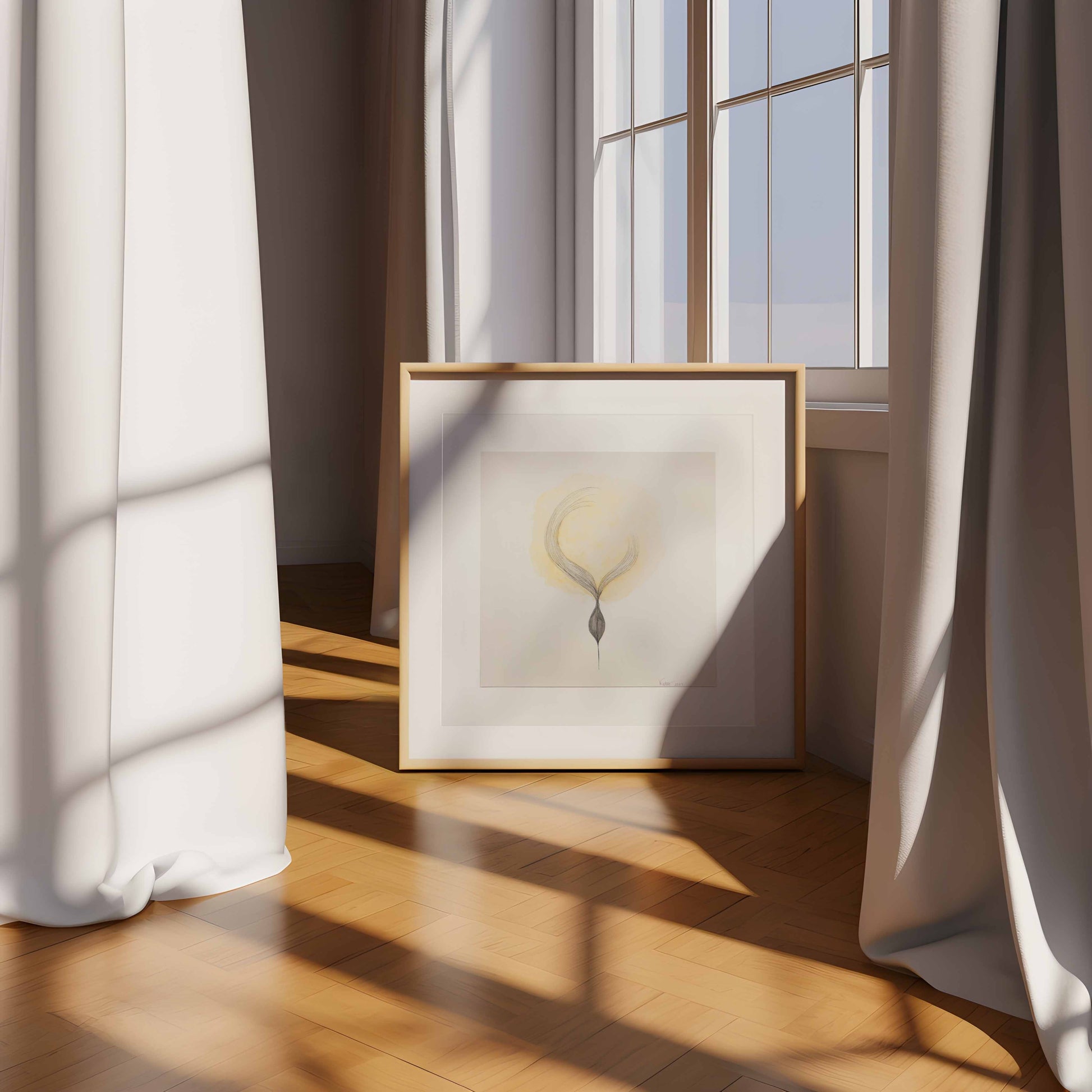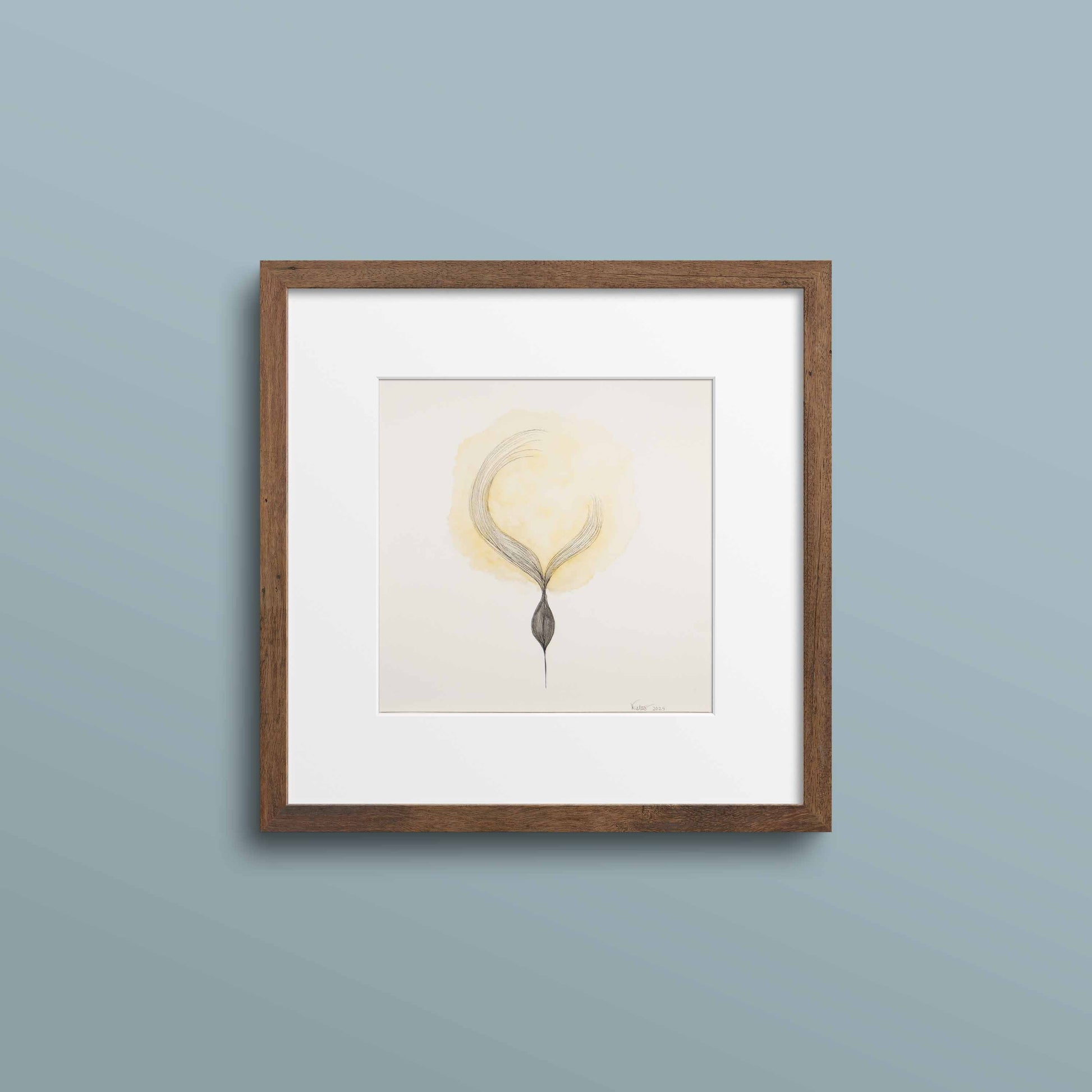 This 12" x 12" original piece invites you to linger in the hush between thoughts. Hand-drawn with Sakura archival pigment liners and painted using richly pigmented Derwent Inktense watercolor pencils, it explores the delicate gravity of inner stillness.