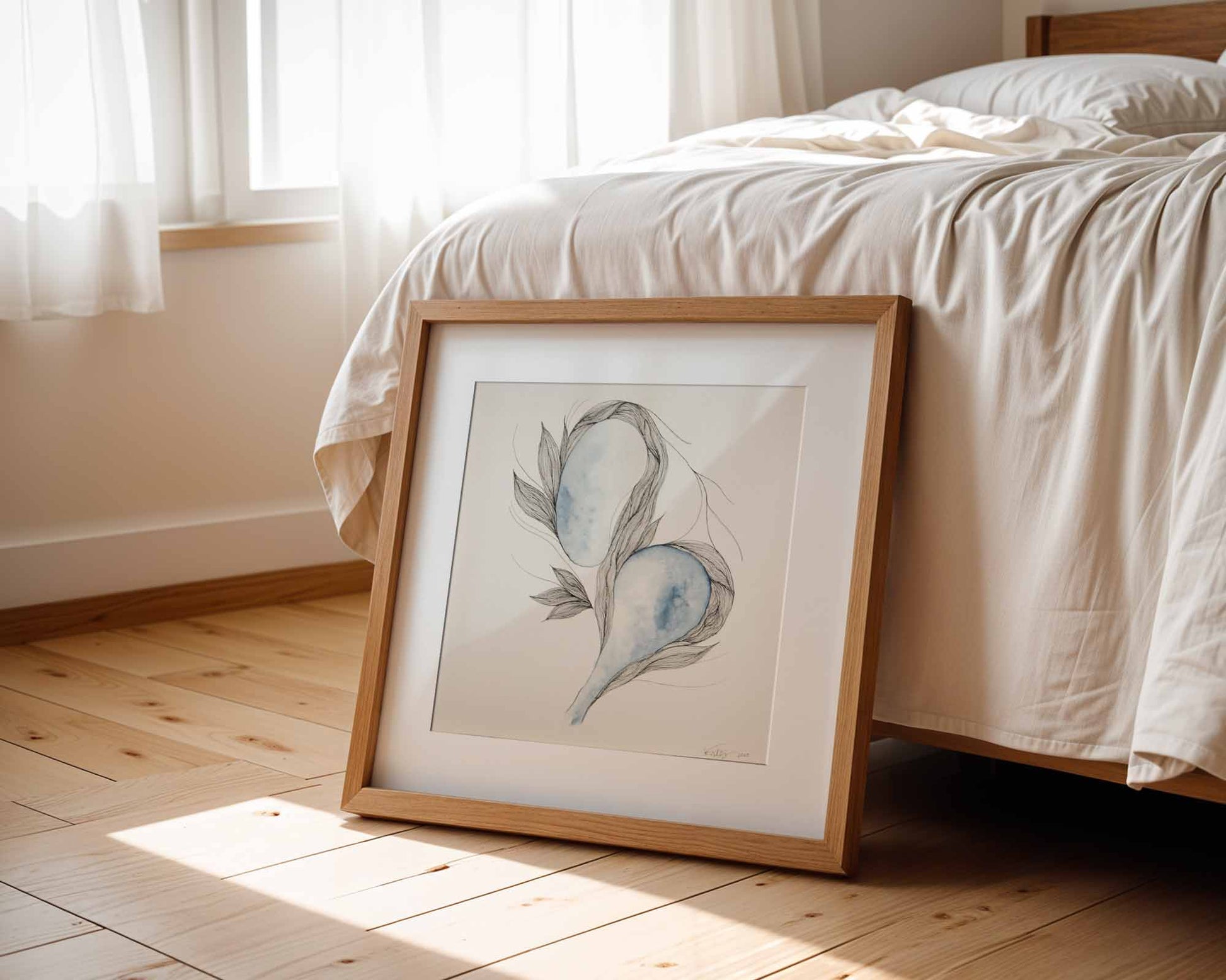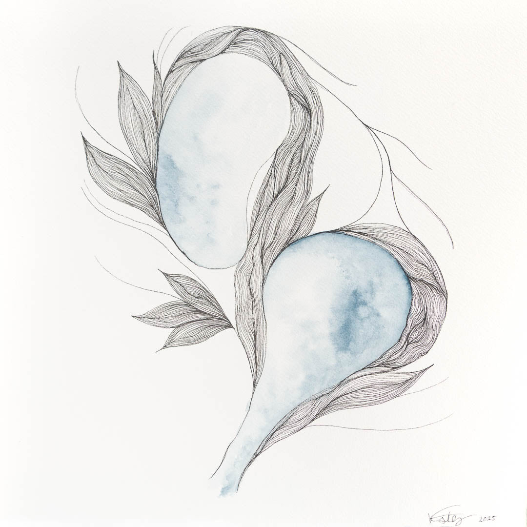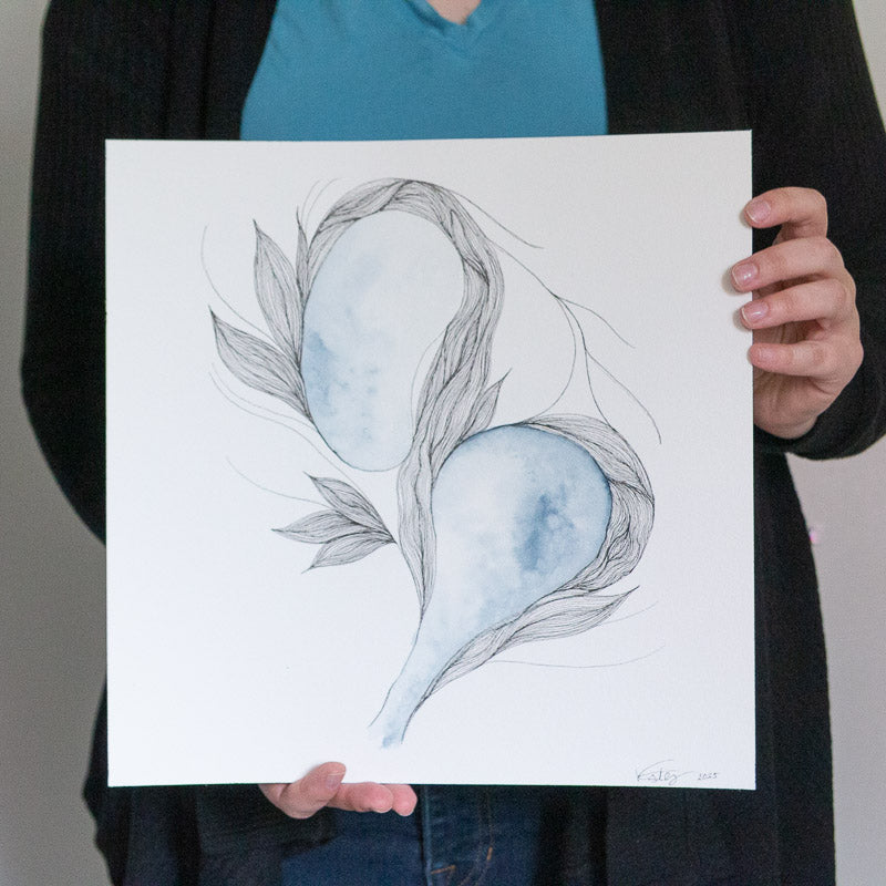 Created on Arches 140lb cold-pressed, 100% cotton watercolor paper, the texture of the paper enhances the sense of atmospheric softness. This piece invites quiet contemplation, like listening for meaning in a hushed room—where intuition leads and presence deepens.